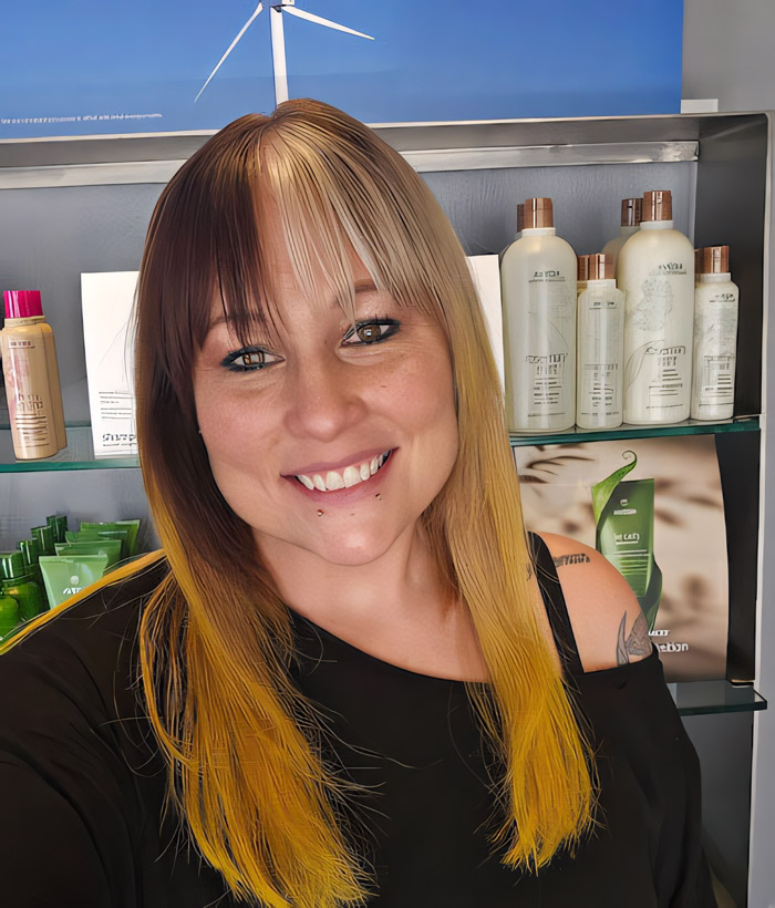 Cassie became the owner in 2017 after working in the salon for a little over a year.  Her passion is working with multiple colors at once or cutting hair! Her favorite AVEDA products are Sap Moss, Botanical Repair Conditioner, and Thickening Tonic!